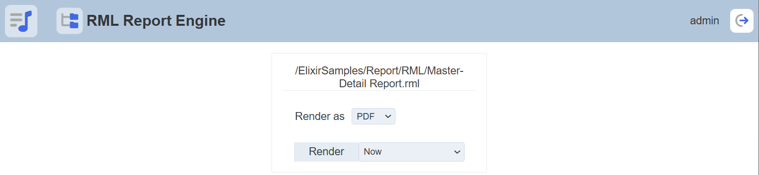--data '{"rml":"/ElixirSamples/Report/RML/Master-Detail Report.rml", "mimeType": "application/pdf"}' \