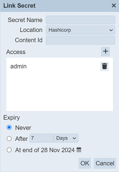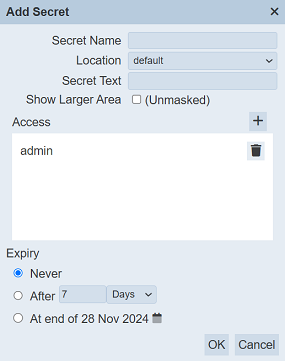| Expiry | Unique name of the secret. | Textbox | None |