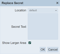 To replace the secret text, click on the “Replace Secret” icon under the “Actions” column corresponding the desired secret. The “Replace Secret” dialog box will appear.