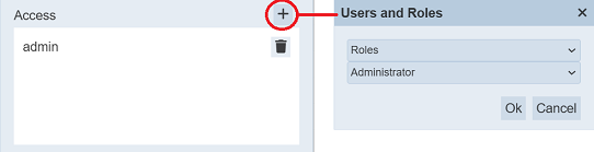 The “Access” field allows you to add users and/or roles to the secret. By default, the owner is added into the list. To add a new user/role, click on the “+” icon above the list. The “Users and Roles” dialog box will appear.