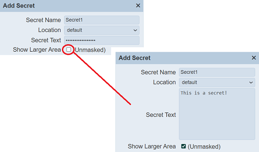 | Show Larger Area (Unmasked) | If selected, displays the secret text unencrypted. | Checkbox | Not selected |