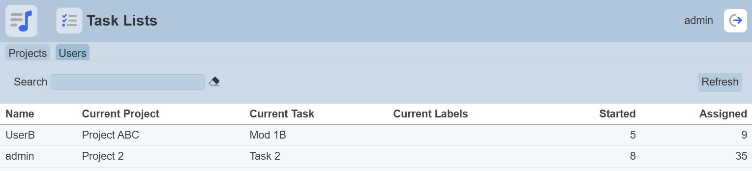After performing actions on the browser/tab, the list is reloaded to display the list of tasks. The manual “Refresh” button is available and is particularly useful if there are others making changes on the same page.
