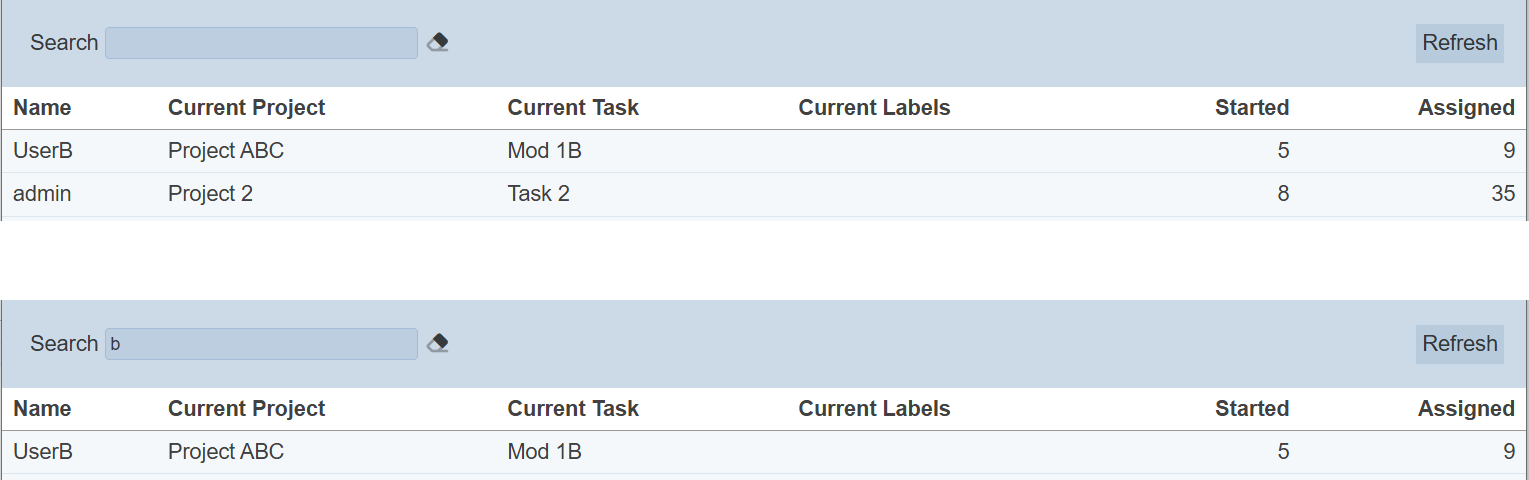 The items under the “Name”, “Current Project” and “Current Task” columns are clickable. That means, clicking on the items under these columns will display their respective page.