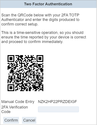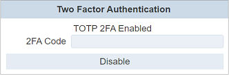 Enter the code as your 2FA verification code (with or without space) and click on the “Confirm” button. Once the authentication is completed, the “TOTP 2FA Enabled” panel will appear.