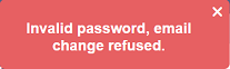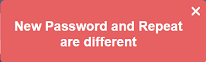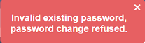 If the existing password or new password is incorrect or left blank, the relevant error message will appear.