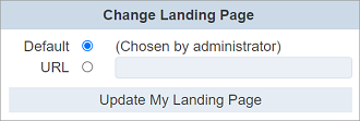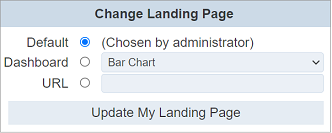 The “Change Landing Page” panel will appear. If the user does not have the mod-dashboards privilege, the “Dashboard” option will not appear.
