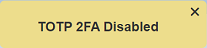 You can disable the 2FA by keying in the 6-digit code and click on the “Disable” button. A notification will appear after the 2FA has been disabled.