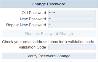 If the passwords are correct, a validation code will be sent to the user’s email address. Key in the validation code and click on the “Verify Password Change” button.