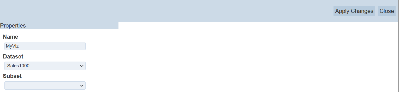 Edit the name, dataset and subset of the visualisation. Do note that the name need to be unique.
