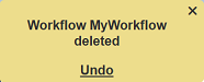 Upon clicking on the “Undo” button, the deleted workflow is restored and is added back to the list of workflows.