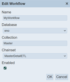 Edit the fields as required. If the “Name” field is to be edited, do note that the name need to be unique. You can enable or disable the workflow by selecting or unselecting the the “Enabled” field.