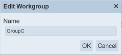 | Name | Unique name of the workgroup. | Y | String | Any text. The value must not exist in the current list of names. The value is case-sensitive. | Empty string |