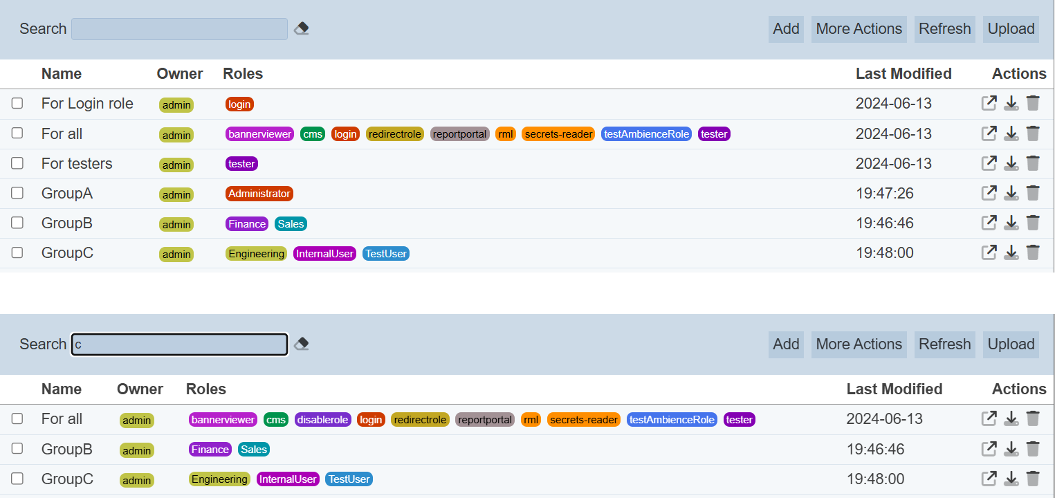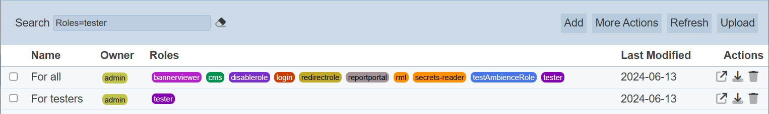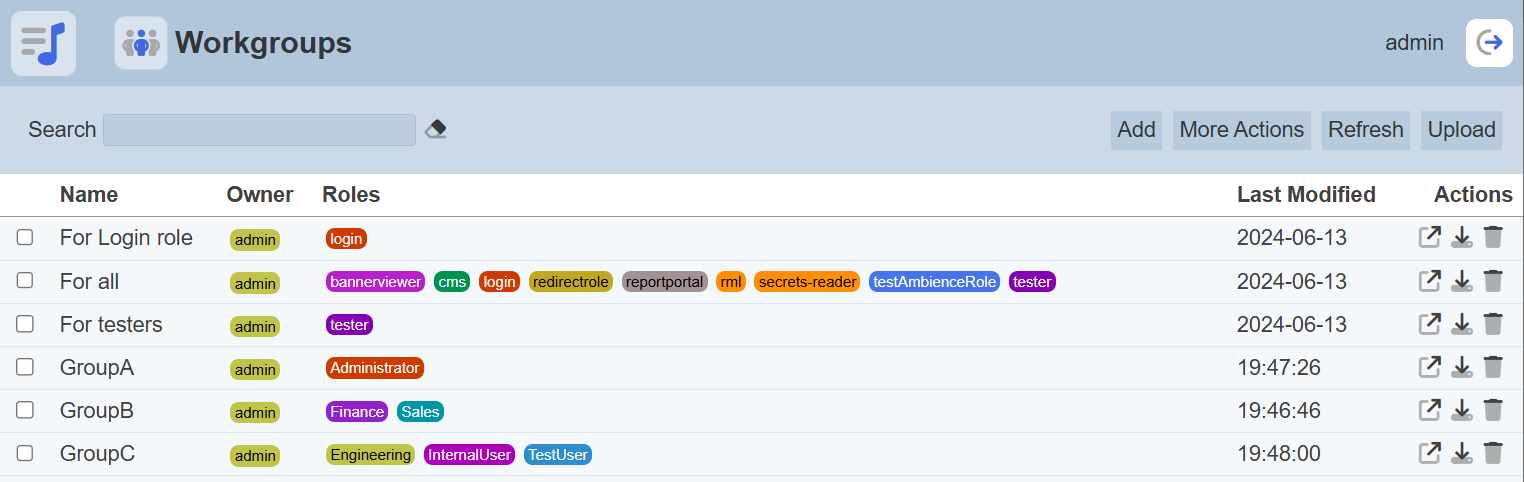 In the example above, workgroups that are assigned the role “tester” are shown.