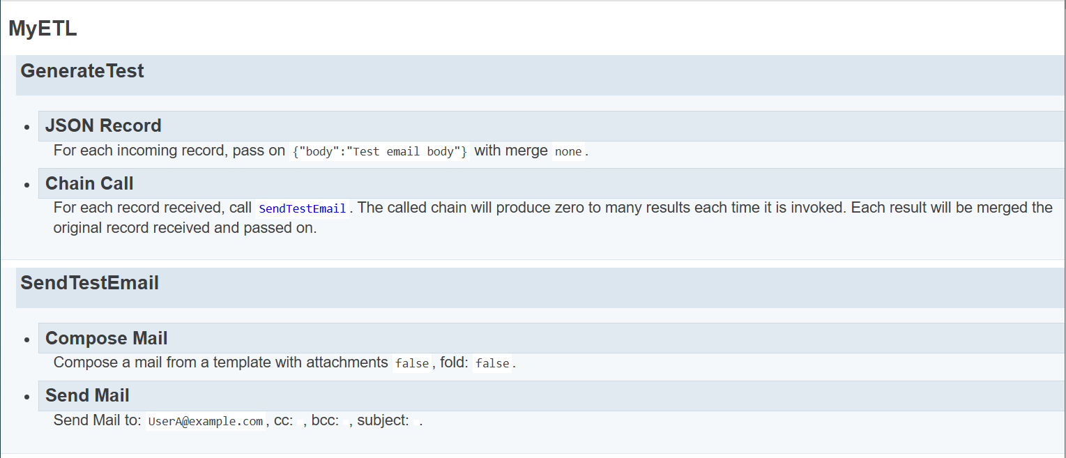 button then click on the Explain option. It opens another browser tab and displays descriptions of each step in each chain. It includes the parameters and values for each step, providing a narrative-like overview of the chainset.