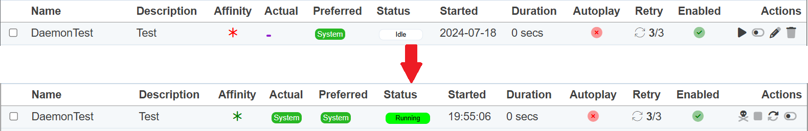 “Run” icon under the “Actions” column corresponding the desired daemon.