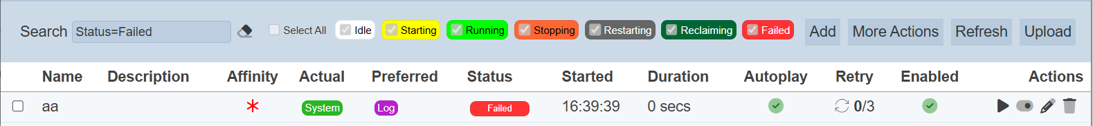 | Retry | Current retry logic state Spinning icon indicates current retrying. “2/3” indicates 2 of 3 retries remaining. |