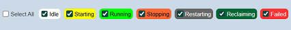 The checkboxes beside the “Select All” field and status allow users to filter the ETL daemon that are listed in the page.