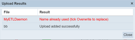 If the name of the daemon to be uploaded already exist, an error message will appear.