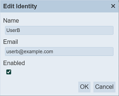 An enabled identity is represented with a green tick under the “Enabled” column, while a disabled identity is represented with a red cross.