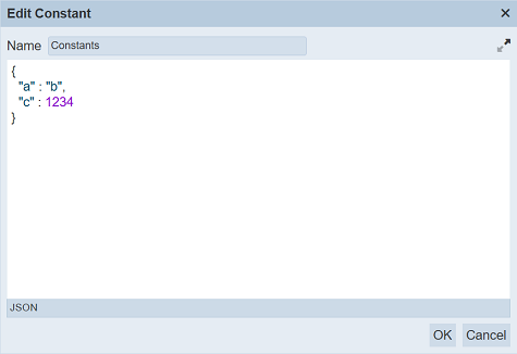 | Value | Value of the constant in JSON format. | Textbox | None |