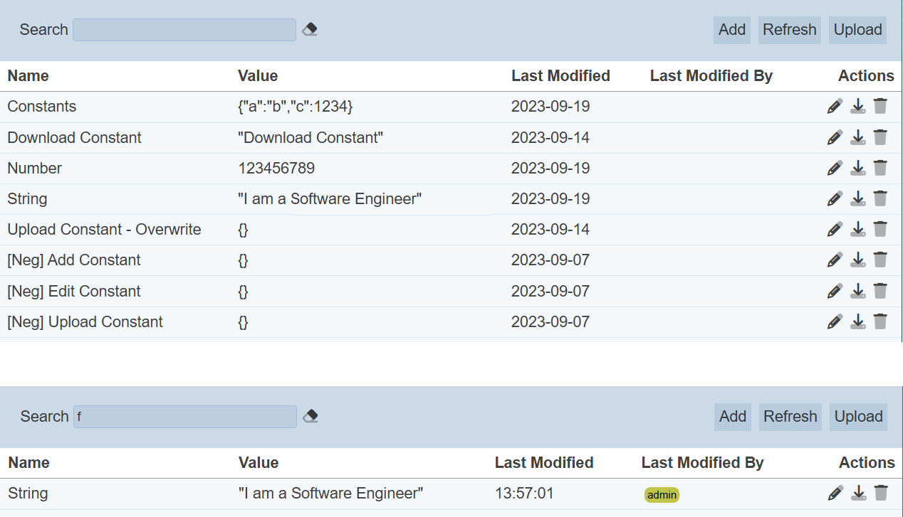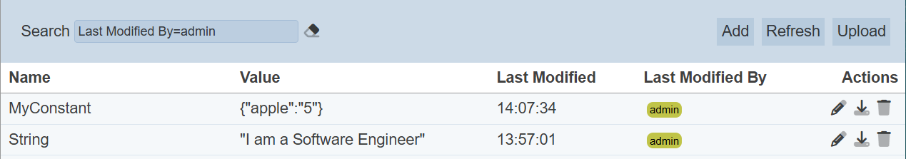 In the example above, constants that are last modified by “admin” are shown.