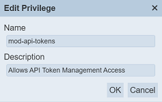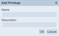 Click on the “Ok” button to proceed with adding the new privilege. Clicking on the “Cancel” button aborts the action.