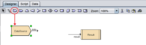 “DataSource” icon from the menu bar and click on the desired location in the designer diagram. The datasource processor will appear in the designer diagram with the default name “DataSource”.