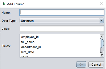 To add a derived field, click on the “Add” button on the left. A “Add Column” dialog box will appear.
