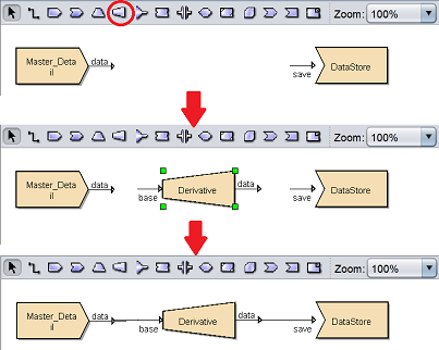 button on the menu bar and click on the location in the designer diagram. Use the Flow connector to connect the Derivative processor and another processors together.