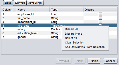 There are three tabs in this wizard page, namely “Base”, “Derived” and “JavaScript”.