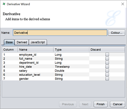 The “Derived” tab allows you to add derived data based on the fields in the “Base” tab.