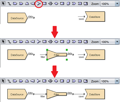 button on the menu bar and click on the location in the designer diagram. Use the Flow connector to connect the Filter processor and another processors together.