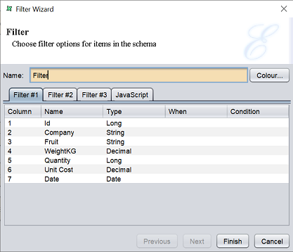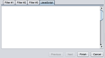 You can add up to three filters for the each field in the “Filter #1” to “Filter #3” tabs. They are identical. The “JavaScript” tab allows you to add script for more complex filtering.