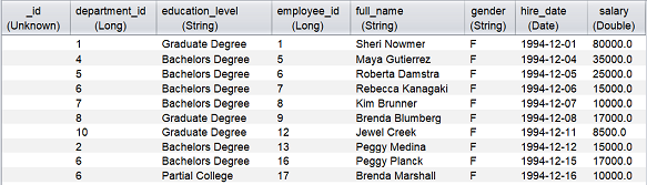 The “Input JSON” field allows you to creata parameter for the dataset datasource. In the example below, the dataset contains information of employees.