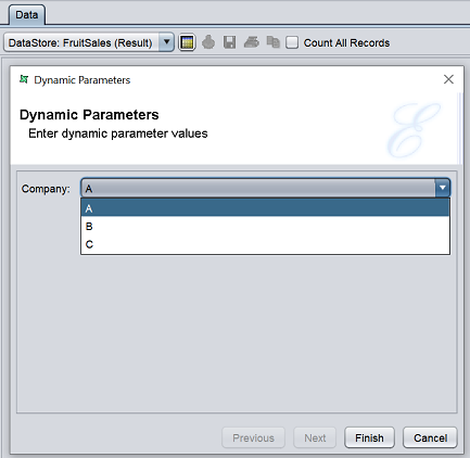 To test the effect, click on the “Load Data” icon on the toolbar. The “Dynamic Parameters” dialog box will appear.