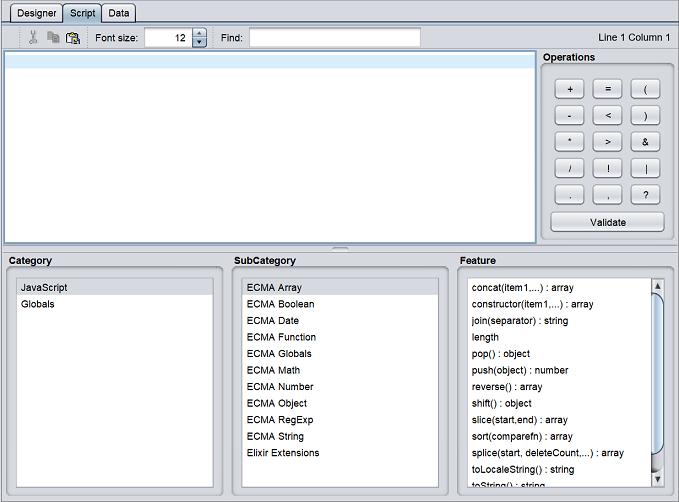 - Script - Displays the JavaScript functions created to enhance the process power of the Elixir Data engine