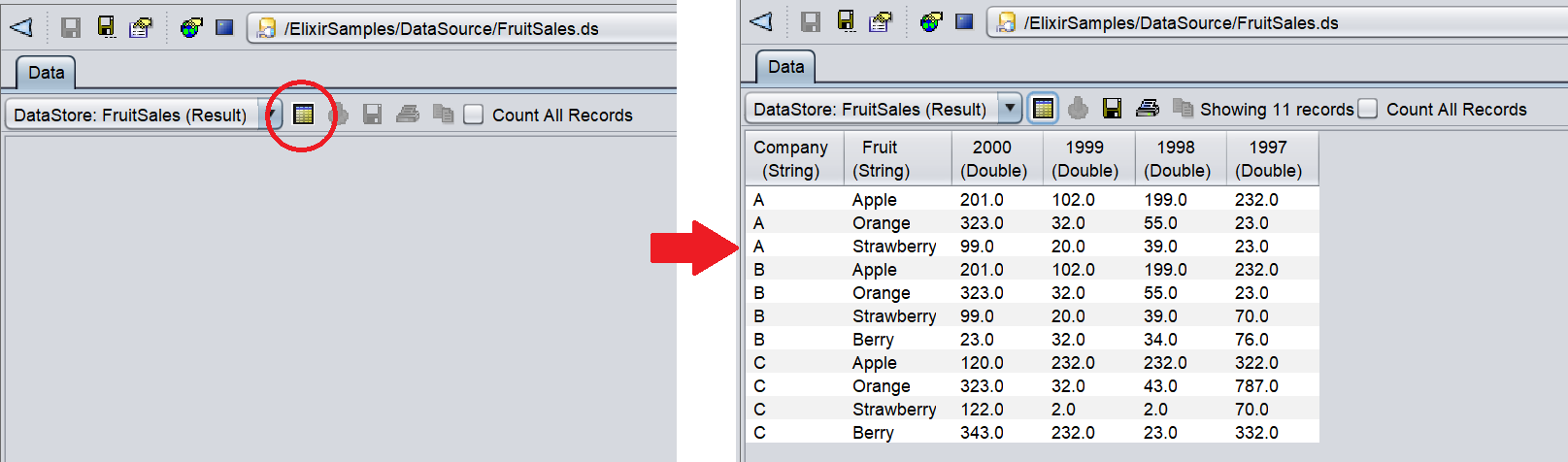 This function is used to display the total number of records present in the datasource. By default, the data window displays up to a maximum of 500 records. On selecting this function (via checkbox) and clicking on the “Load Data” icon, the total number of records available in the datasource is displayed on the top of the data window. Turning this option in will slow the response for huge datasources as the value can only be obtained after all processing has finished.