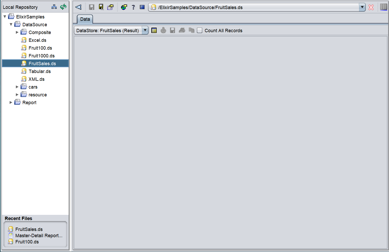 | Count All Records | Displays the total number of records present in the data source. By default, the workspace displays up to a maximum of 500 records. On selecting the Count All Records checkbox and clicking the Load Data icon, the total number of records available in the data source is displayed on the top of the workspace. Turning this option on will slow the response for huge data sources as the value can only be obtained after all processing has finished. |