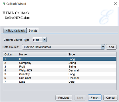 Callback element is a component plugged in to Elixir Report Designer to allow specialized rendering. Java code can be plugged into the render engine to handle specific data formats.