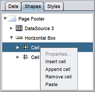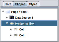 To edit, select the horizontal box in the report and select the “Shapes” tab from the tree panel of the workspace.