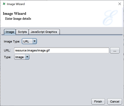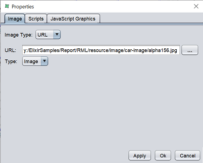 Key in the Java into the textbox below to specify a URL or path that points to the image. This is useful to display images dynamically when the report is rendered.