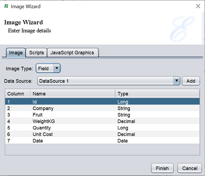 In the “Image” tab, the “Image Type” field allows you to select the type of image to place into the report. There are three options: