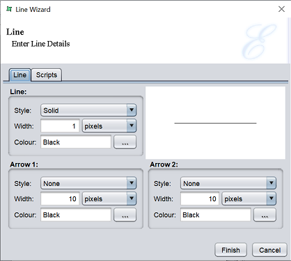 To draw a line in the report, click on the “Line” button and click on the location where you wish to place the line. A “Line Wizard” will appear.