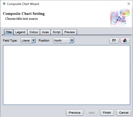 Key in the appropriate title in the textbox and setup the title as required in the other tabs. You can preview the composite chart in the “Preview” tab before clicking on the “Finish” button.