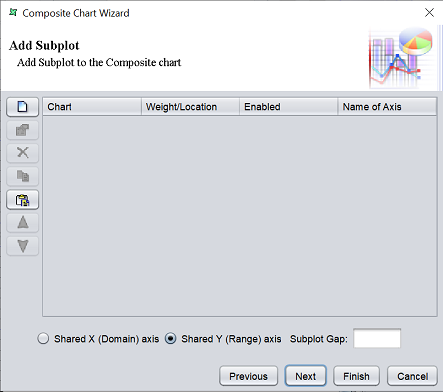 The next page allows you to add a subplot to the composite chart. The creation of each subplot is similar to the process o creating a convention Chart element. The only difference is that the process is more simplified with fewer chart types.